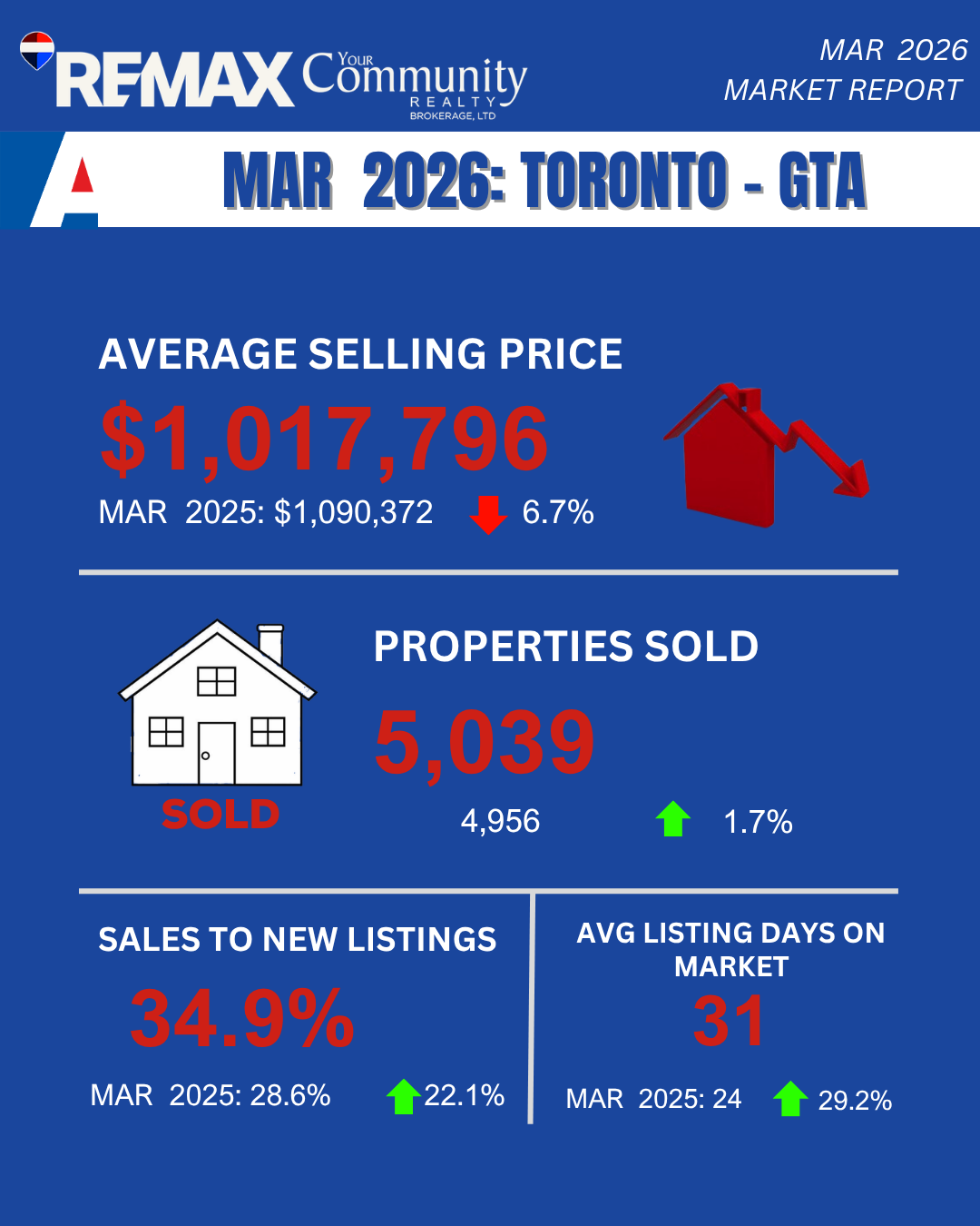 The average selling price across the GTA is holding steady at $1,017,796. While this is still down 6.7% compared to last year, TRREB’s Chief Information Officer noted that if market conditions continue to tighten, selling prices could start leveling off through the remainder of 2026. Buyers currently have substantial negotiating power, but with sales rising and new listings falling, that window may not stay open forever.