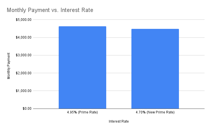Please note: The following calculations are based on the Prime Rate, which the Bank of Canada's overnight rate directly influences. The recent 25 basis point cut lowers the Prime Rate from 4.95% to 4.70%.