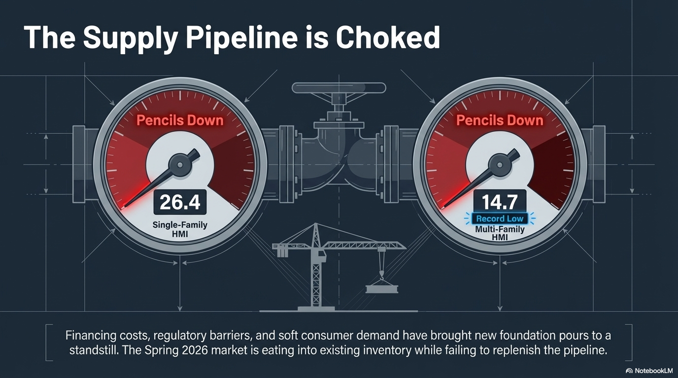 For investors, the critical data point to watch is the Builder Confidence Multi-Family HMI at 14.7. This is the record low that ensures massive supply imbalances in the coming years. Those with capital today are looking past the "great hesitation" of 2026 and positioning for the next decade.